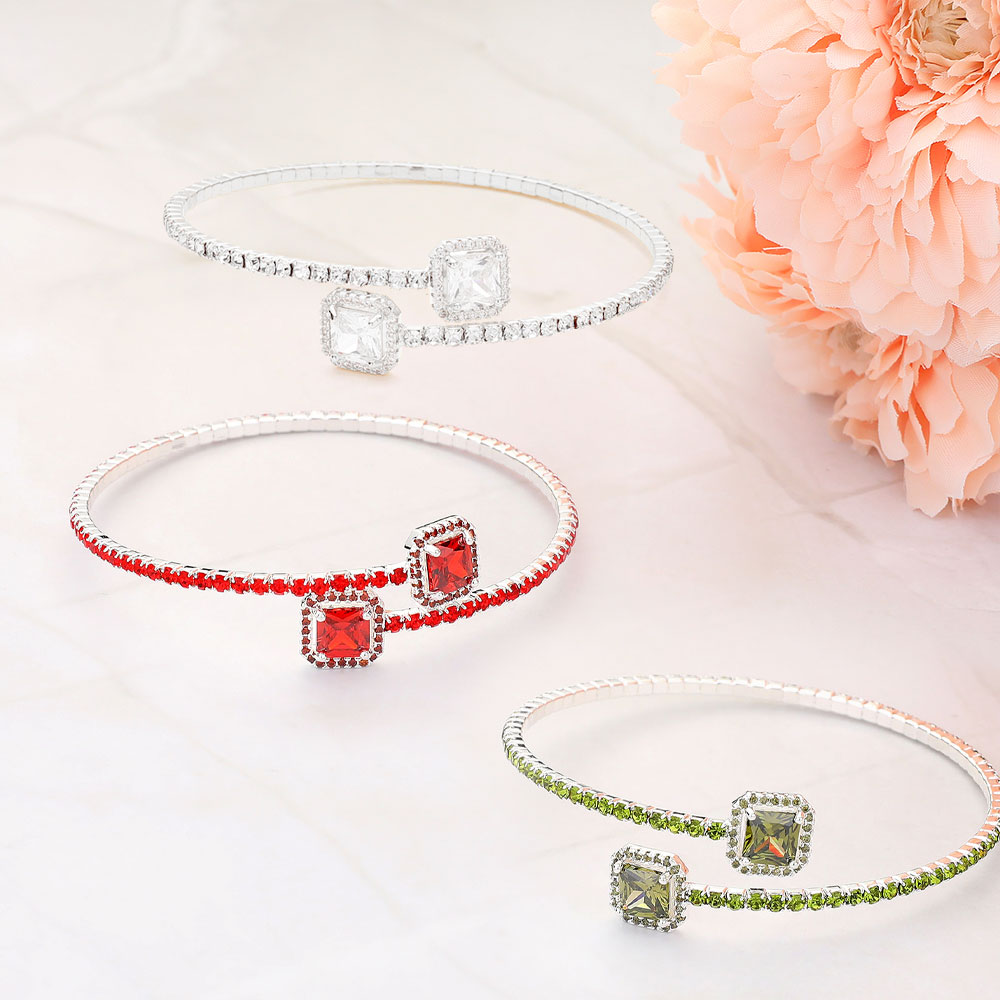 Details • Size : 0.3" H • Adjustable • Elevate your style with this adjustable bangle bracelet adorned with shimmering cubic zirconia accents. The sleek open design and sparkling stones make it a versatile piece, perfect for layering or wearing solo for timeless elegance. • Lead and Nickel Compliant • CZ Cubic Zirconia