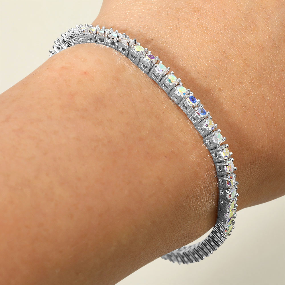 Details • Size : 0.1" H, 8" + 0.1" L • Open Box Clasp Closure • Sophisticated tennis bracelet featuring a continuous line of sparkling gems. Designed for timeless elegance and secure comfort, this piece is perfect for elevating everyday wear or enhancing evening attire. • CZ Cubic Zirconia
