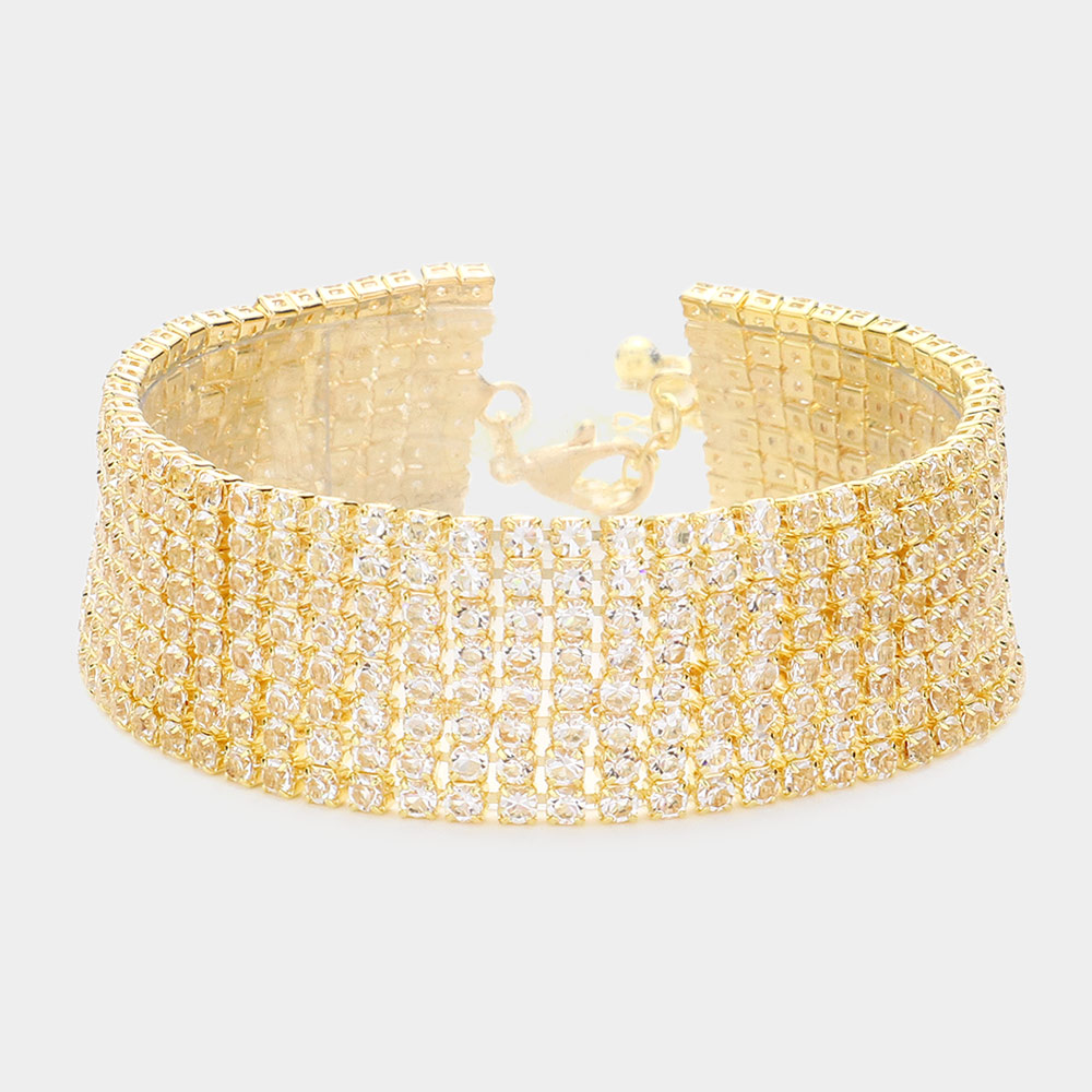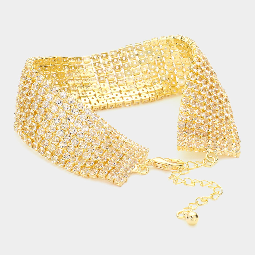 Rectangle Stone Cluster Link Adjustable Evening Bracelet