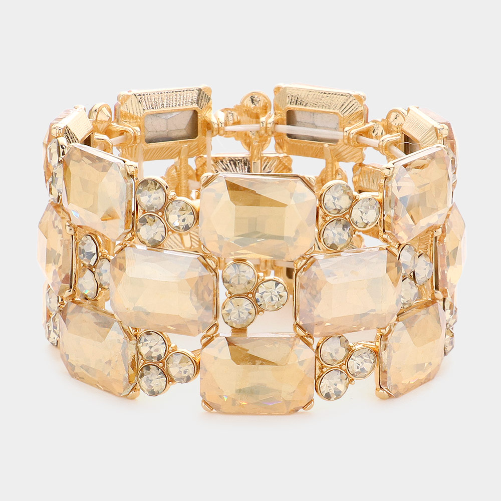 Emerald Cut Stone Accented Evening Stretch Bracelet