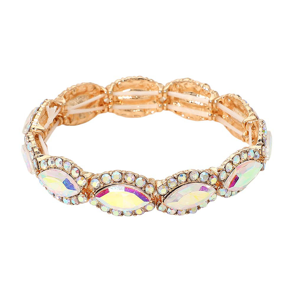 Faceted Marquise Cut Stone Beaded Stretch Evening Bracelet