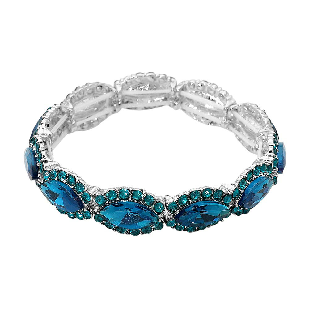 Faceted Marquise Cut Stone Beaded Stretch Evening Bracelet