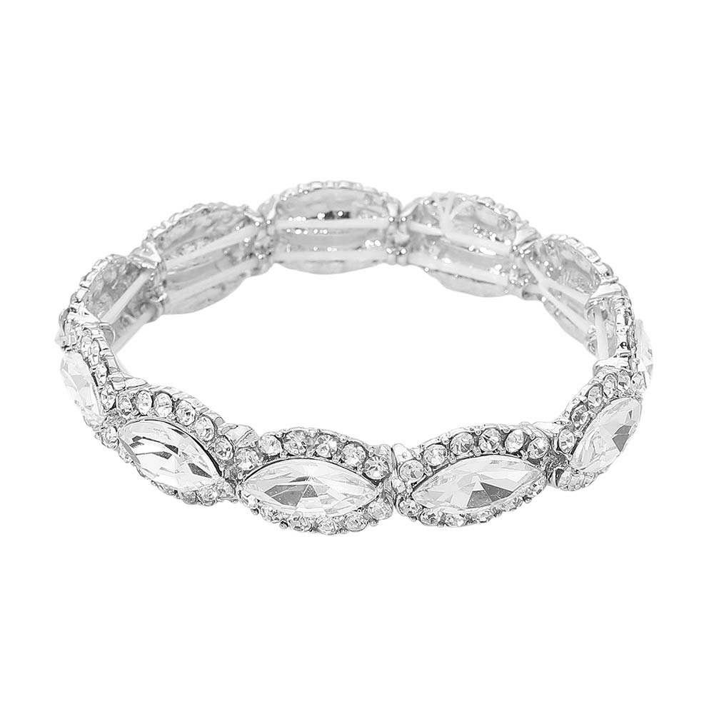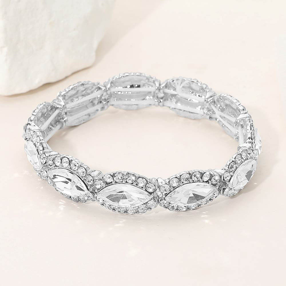 Faceted Marquise Cut Stone Beaded Stretch Evening Bracelet