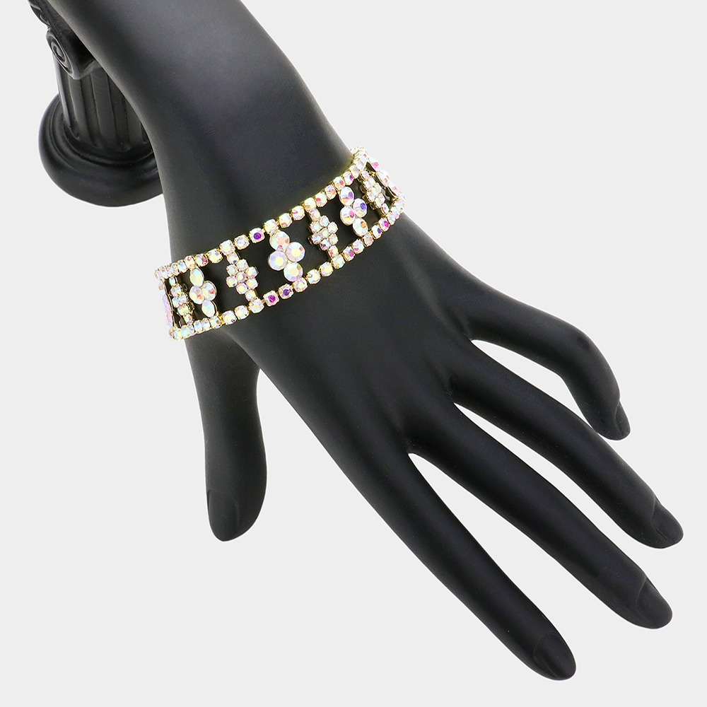 Teardrop Stone Accented Flower Stretch Evening Bracelet