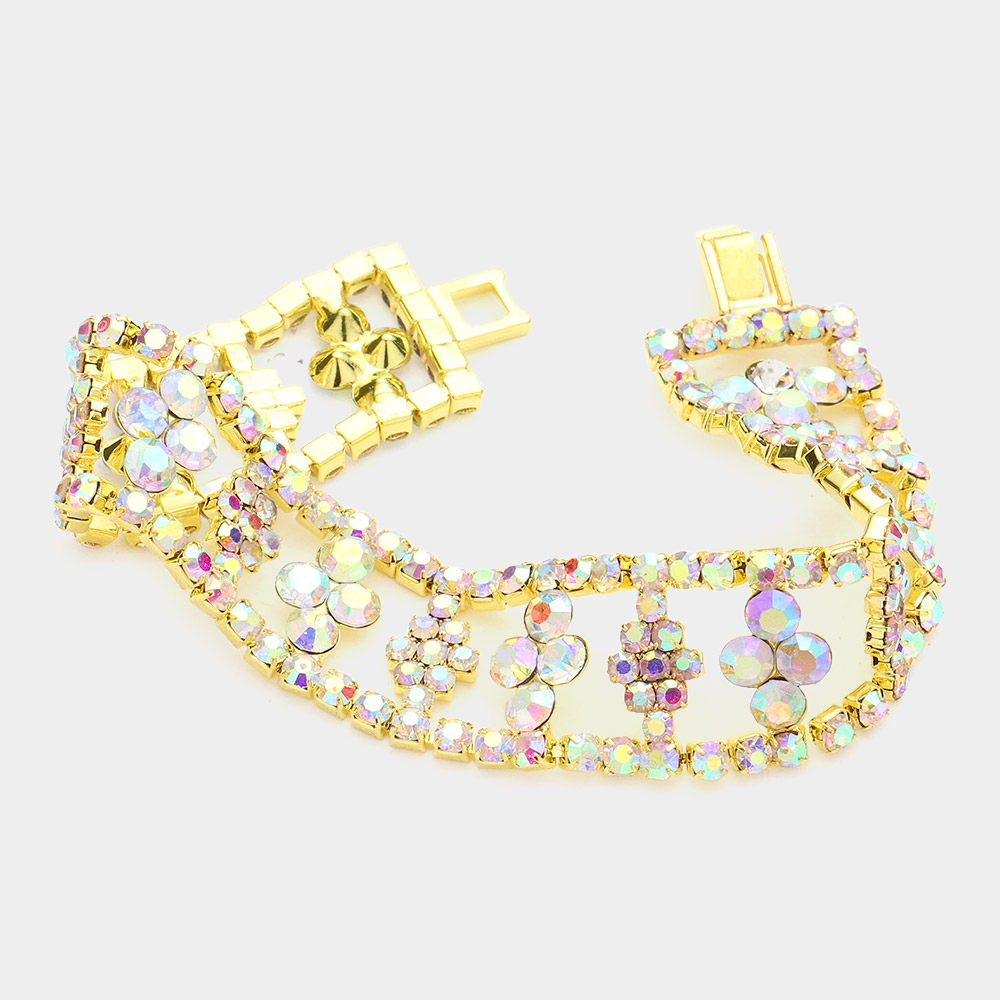 Floral Crystal Rhinestone Evening Bracelet