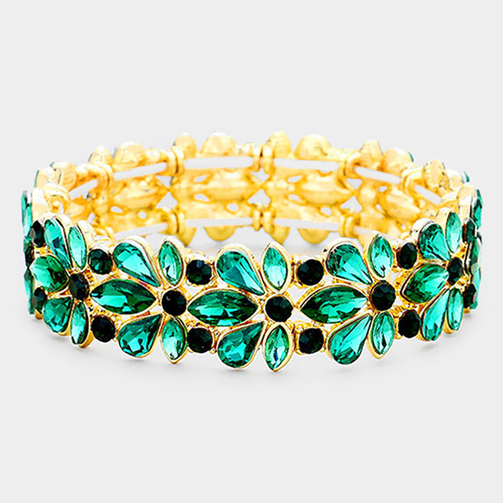 Glass Crystal Metal Flower Leaf Evening Bracelet