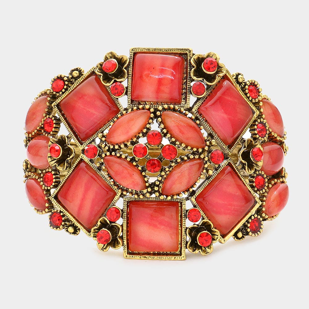 Marquise Stone Leaf Cluster Bun Hair Comb