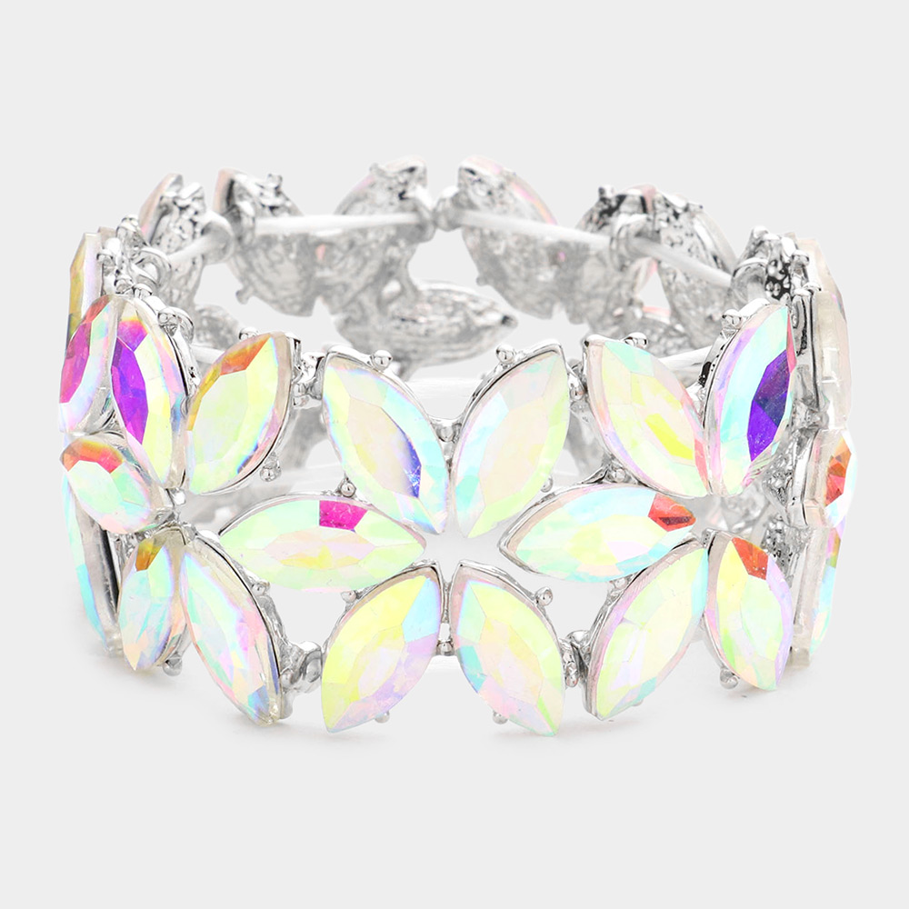 Floral Marquise Stone Cluster Stretch Evening Bracelet
