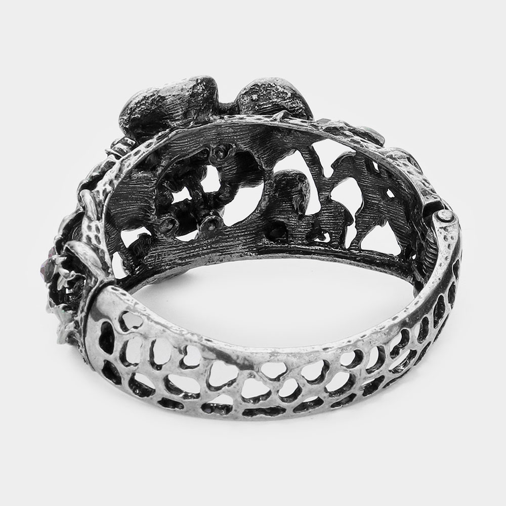 Flower Accented Colored Metal Leaf Hinged Evening Bracelet