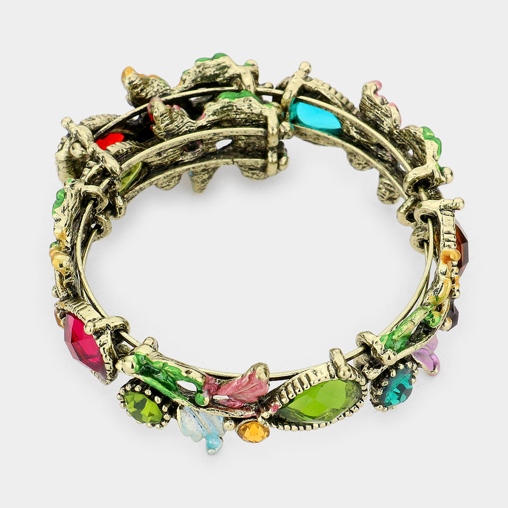 Glass Crystal Metal Flower Leaf Evening Bracelet
