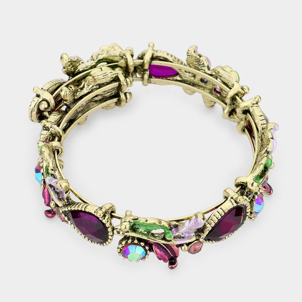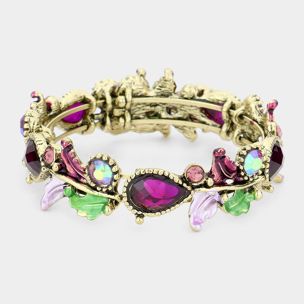 Glass Crystal and Metal Vine Open Adjustable Bracelet