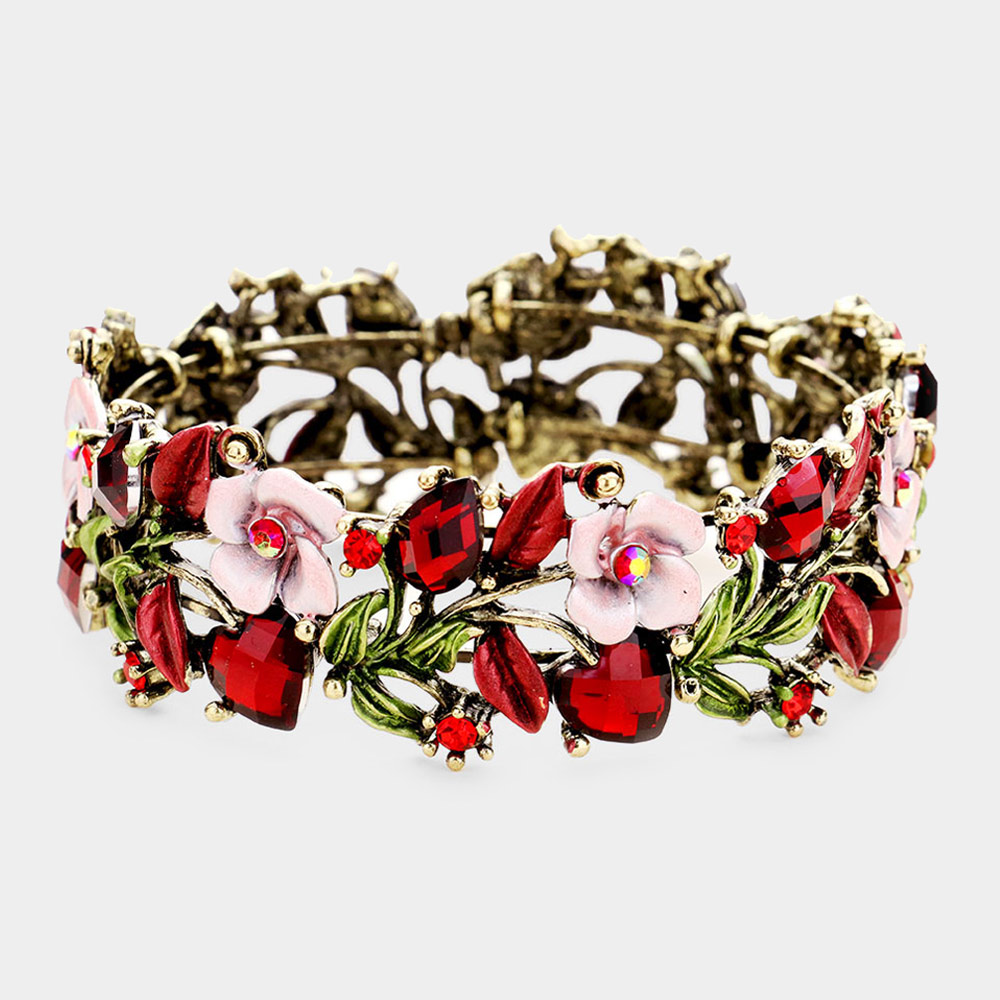 • Brighten your look with a floral statement bracelet featuring vibrant petals, sparkling accents, and intricate detailing. Adjustable for a comfortable fit, this bold accessory brings a touch of whimsy and elegance, making it perfect for special occasions or adding flair to everyday style.