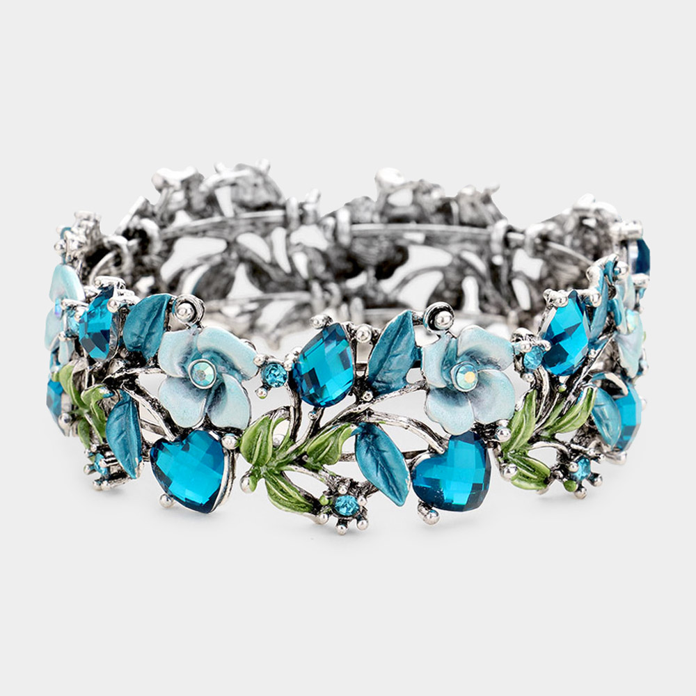 Glass Crystal Metal Flower Leaf Evening Bracelet