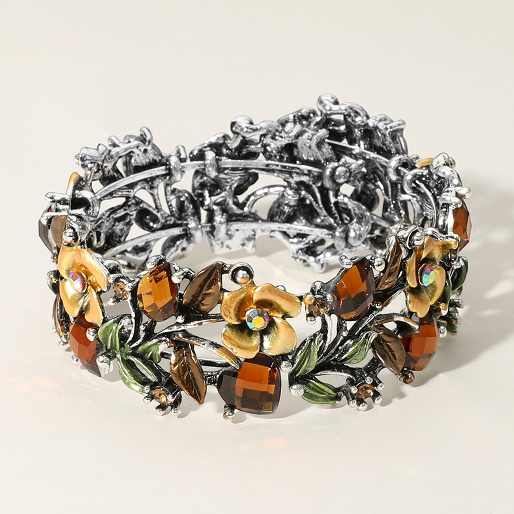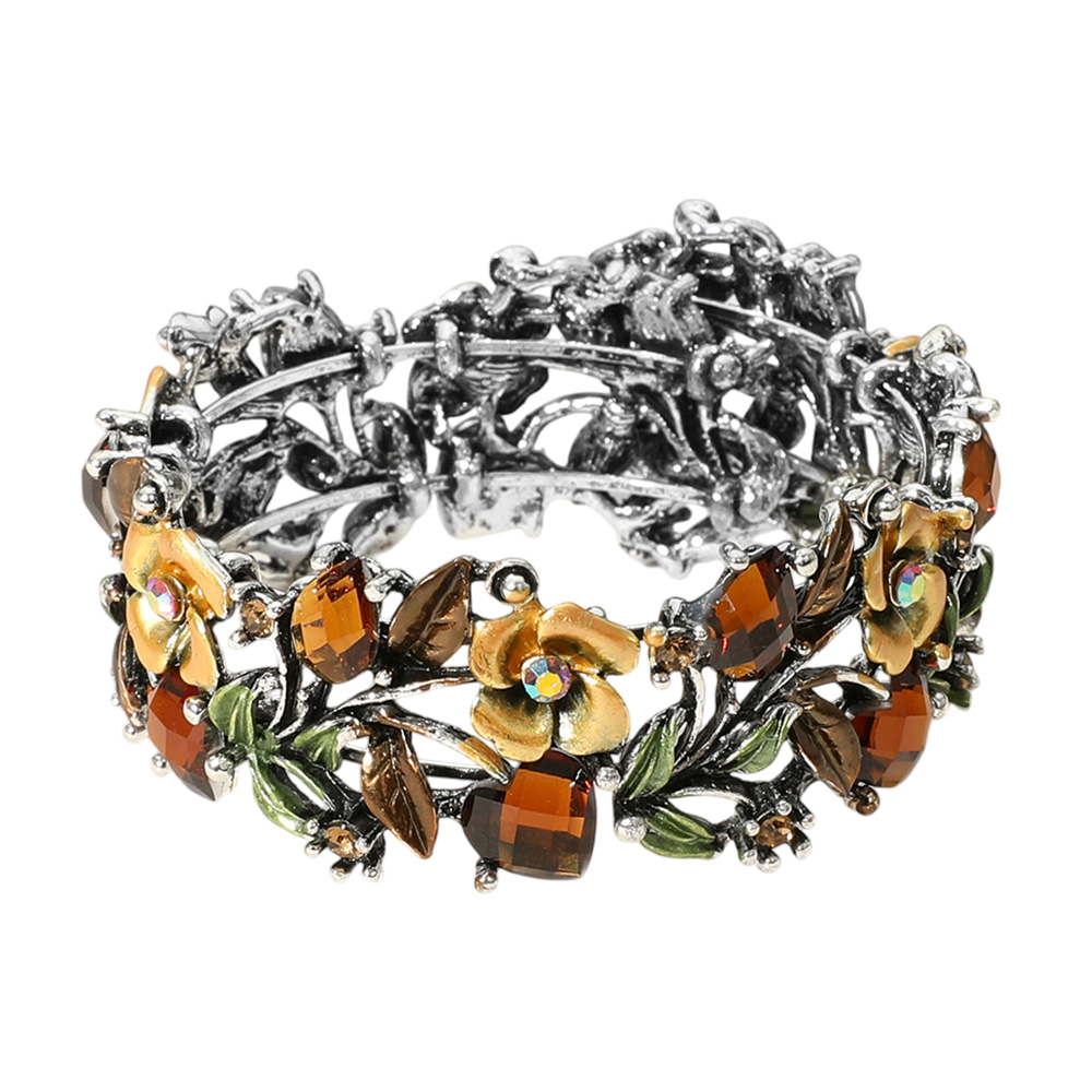 Glass Crystal Metal Flower Leaf Evening Bracelet