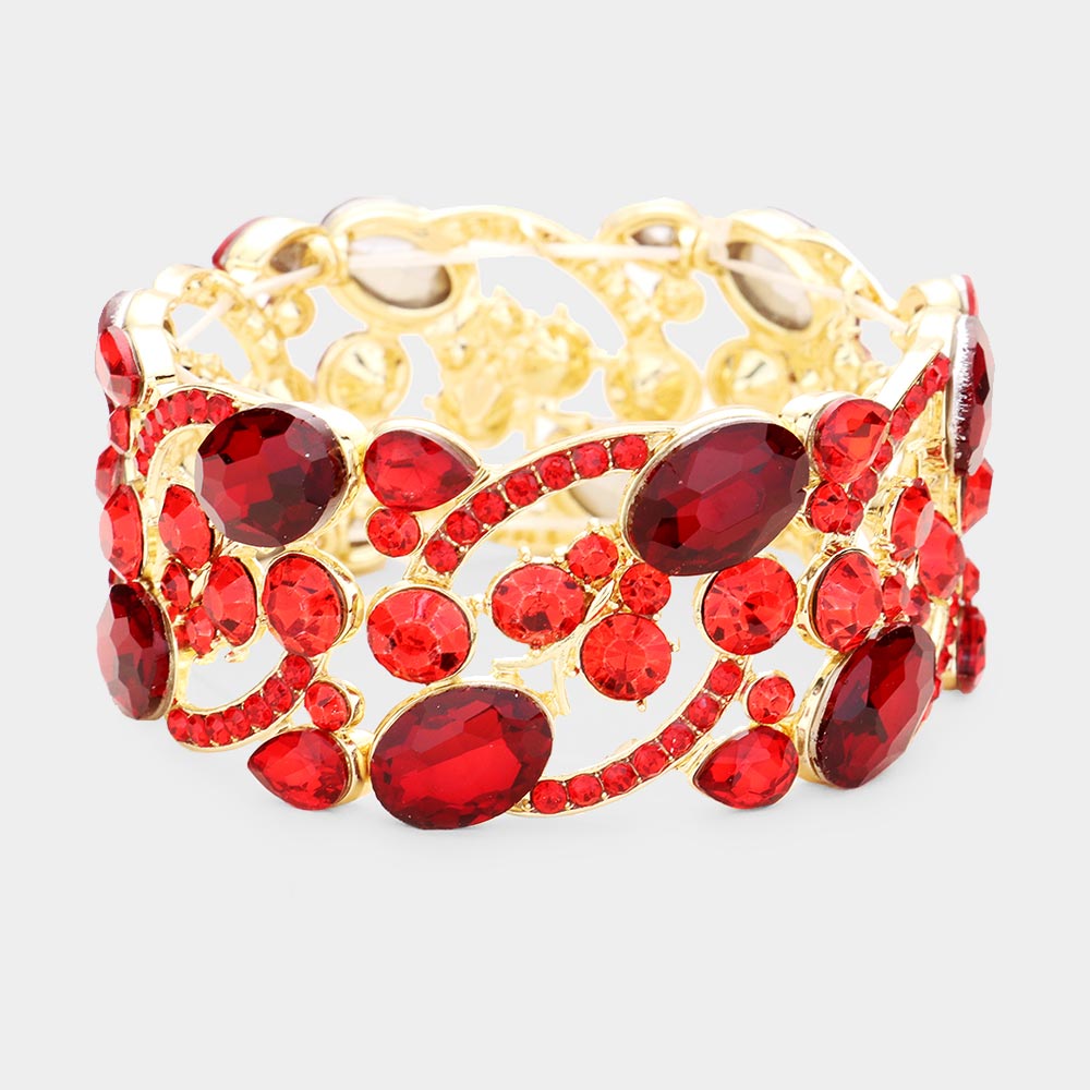 Glass Crystal Teardrop Floral Stretch Evening Bracelet