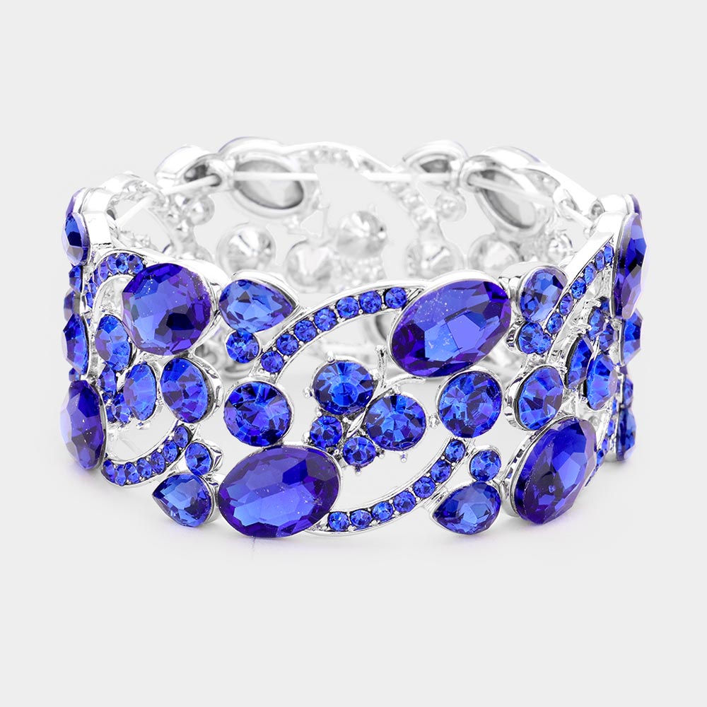 Glass Crystal Oval Butterfly Stretch Evening Bracelets