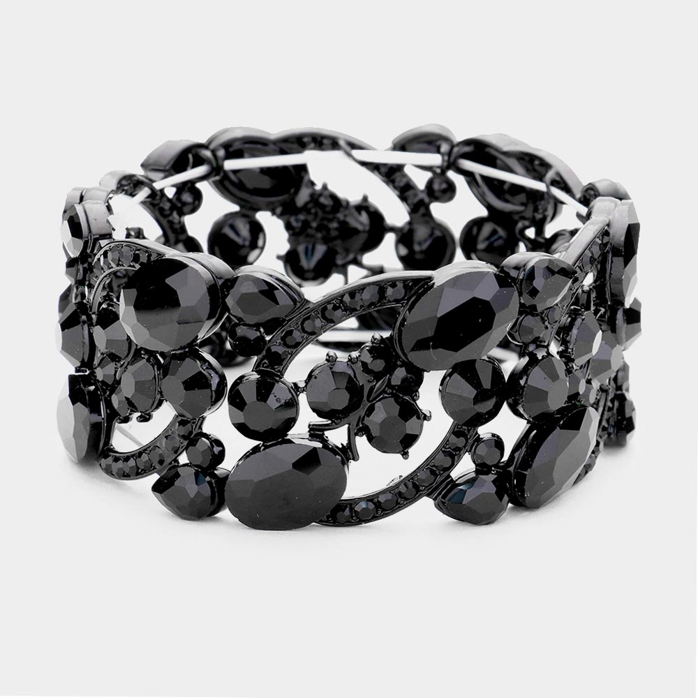 Glass Crystal Oval Butterfly Stretch Evening Bracelets