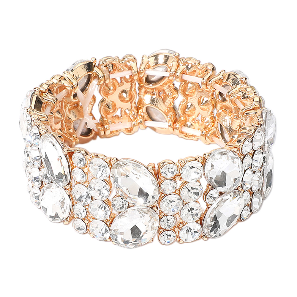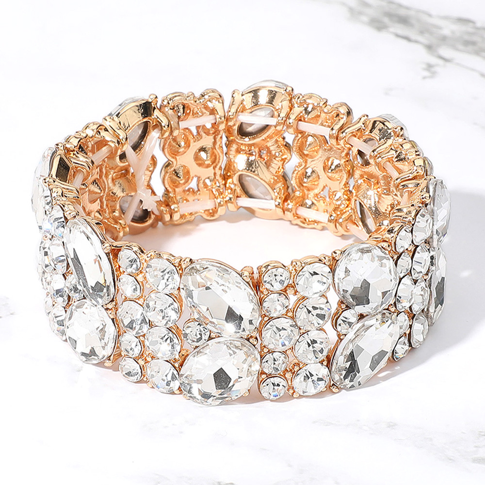 Glass Crystal Oval Round Stretch Evening Bracelet