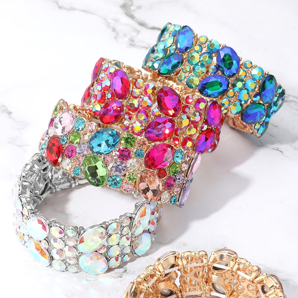 Glass Crystal Oval Round Stretch Evening Bracelet