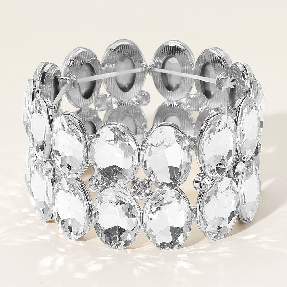 Glass Crystal Oval Stone Cluster Stretch Bracelet
