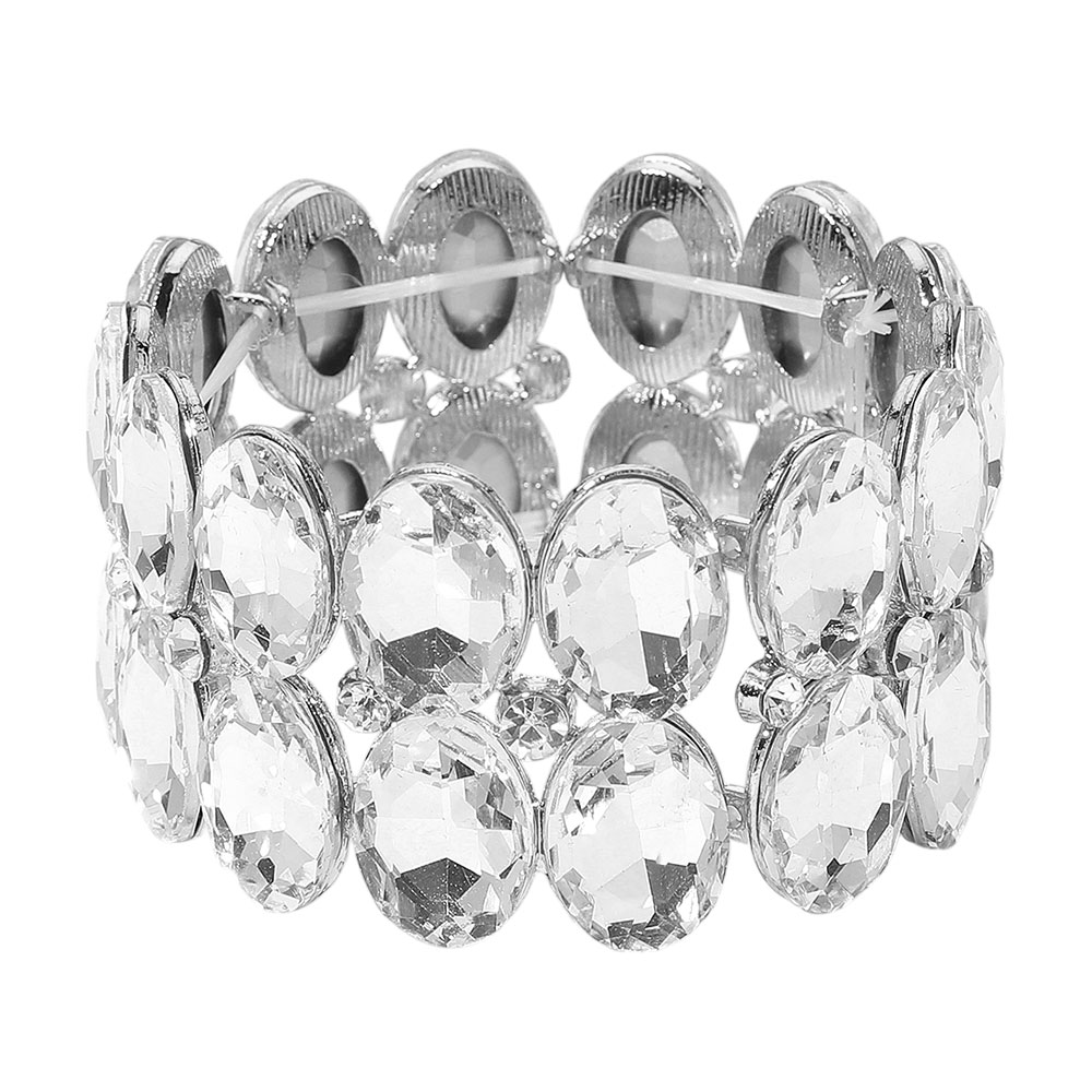 Glass Crystal Oval Stone Cluster Stretch Bracelet Glass Crystal Oval Stone Cluster Stretch Bracelet