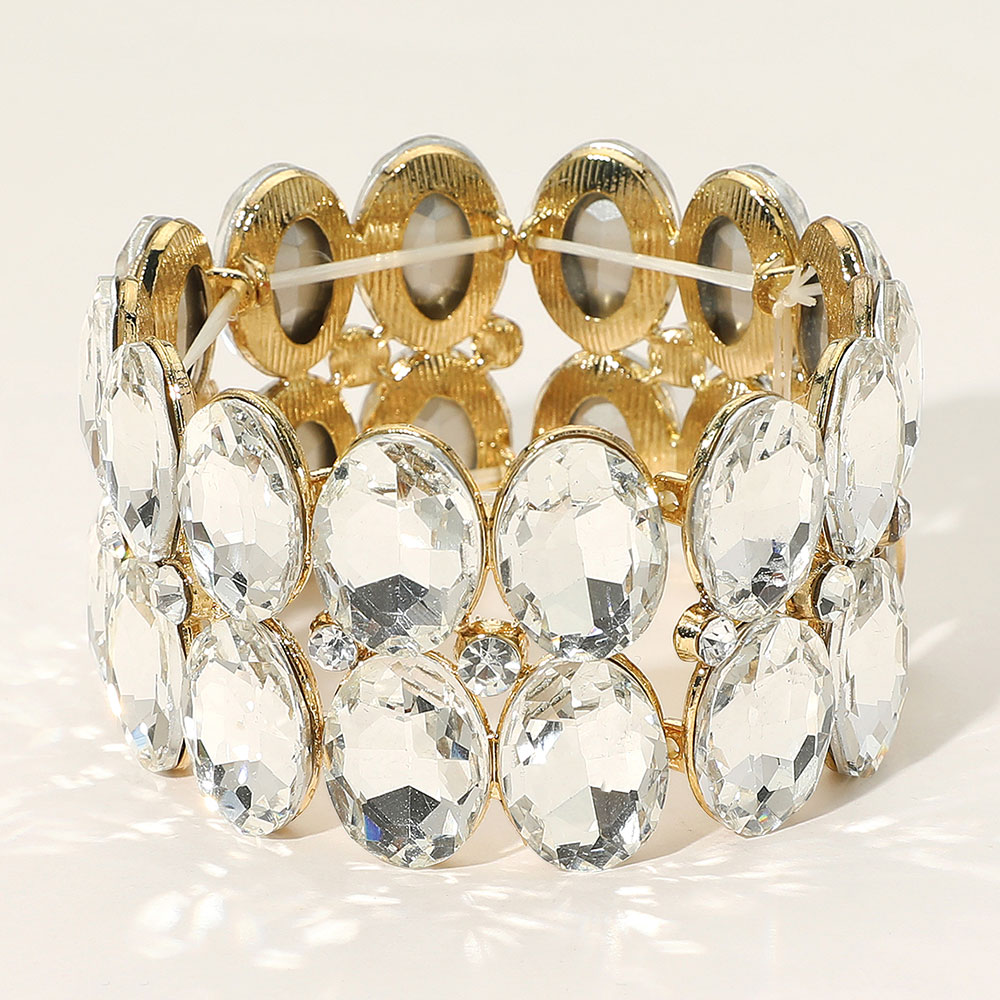 Glass Crystal Oval Stone Cluster Stretch Bracelet