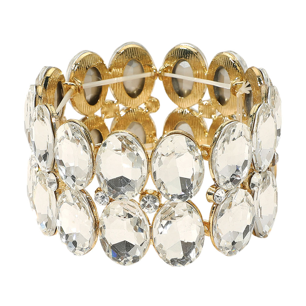 Glass Crystal Oval Stone Cluster Stretch Bracelet Glass Crystal Oval Stone Cluster Stretch Bracelet
