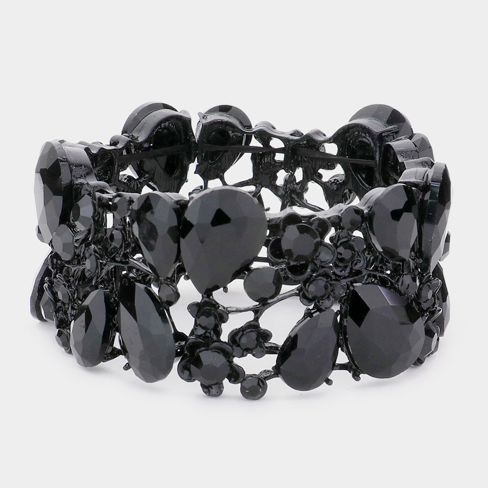 Glass Crystal Teardrop Floral Stretch Evening Bracelet