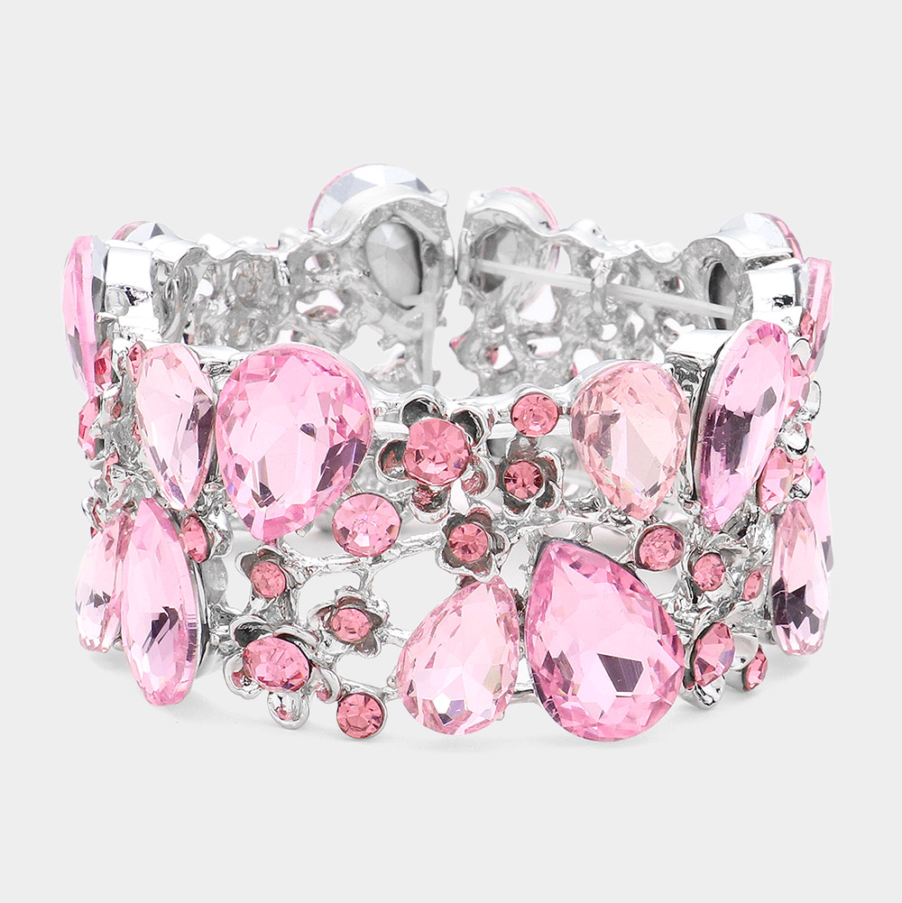 Glass Crystal Teardrop Floral Stretch Evening Bracelet