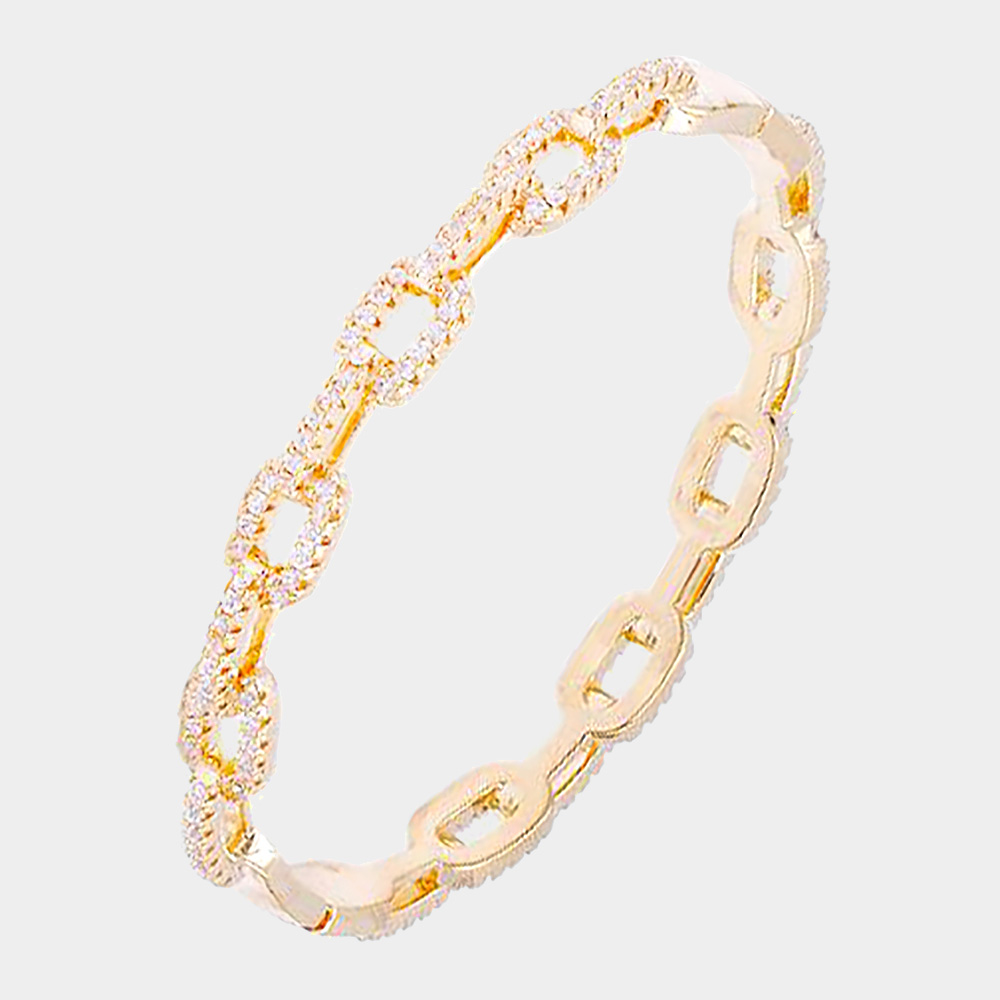 Gold Plated CZ Embellished Open Oval Link Bangle Evening Bracelet