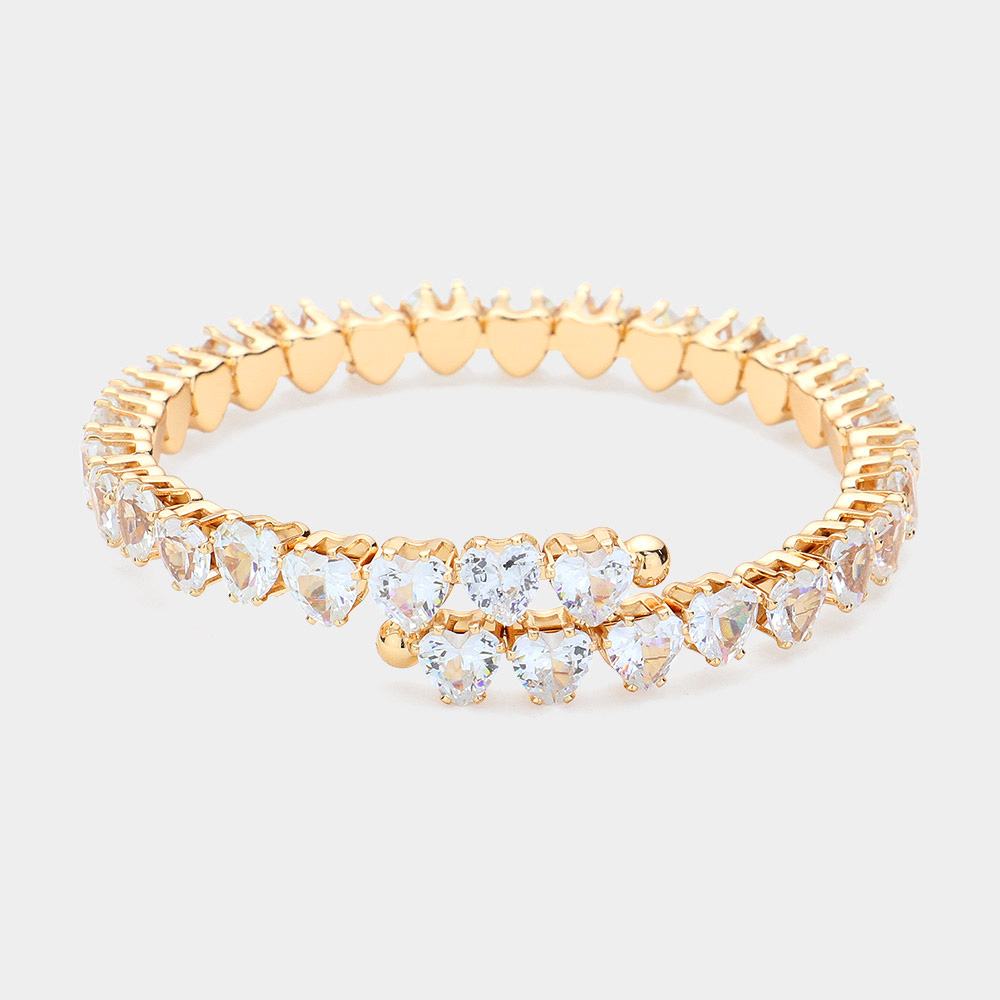 Heart CZ Stone Cluster Adjustable Evening Bracelet