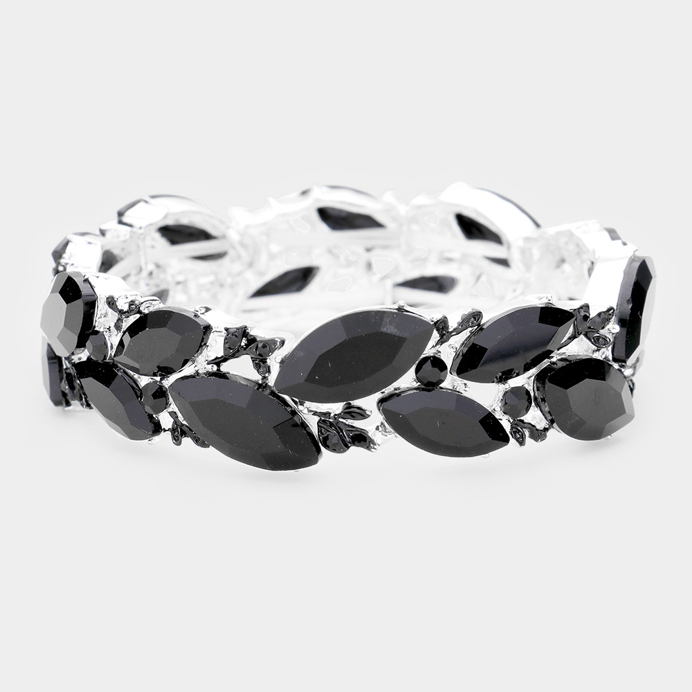 Marquise Stone Cluster Embellished Flower Stretch Evening Bracelet
