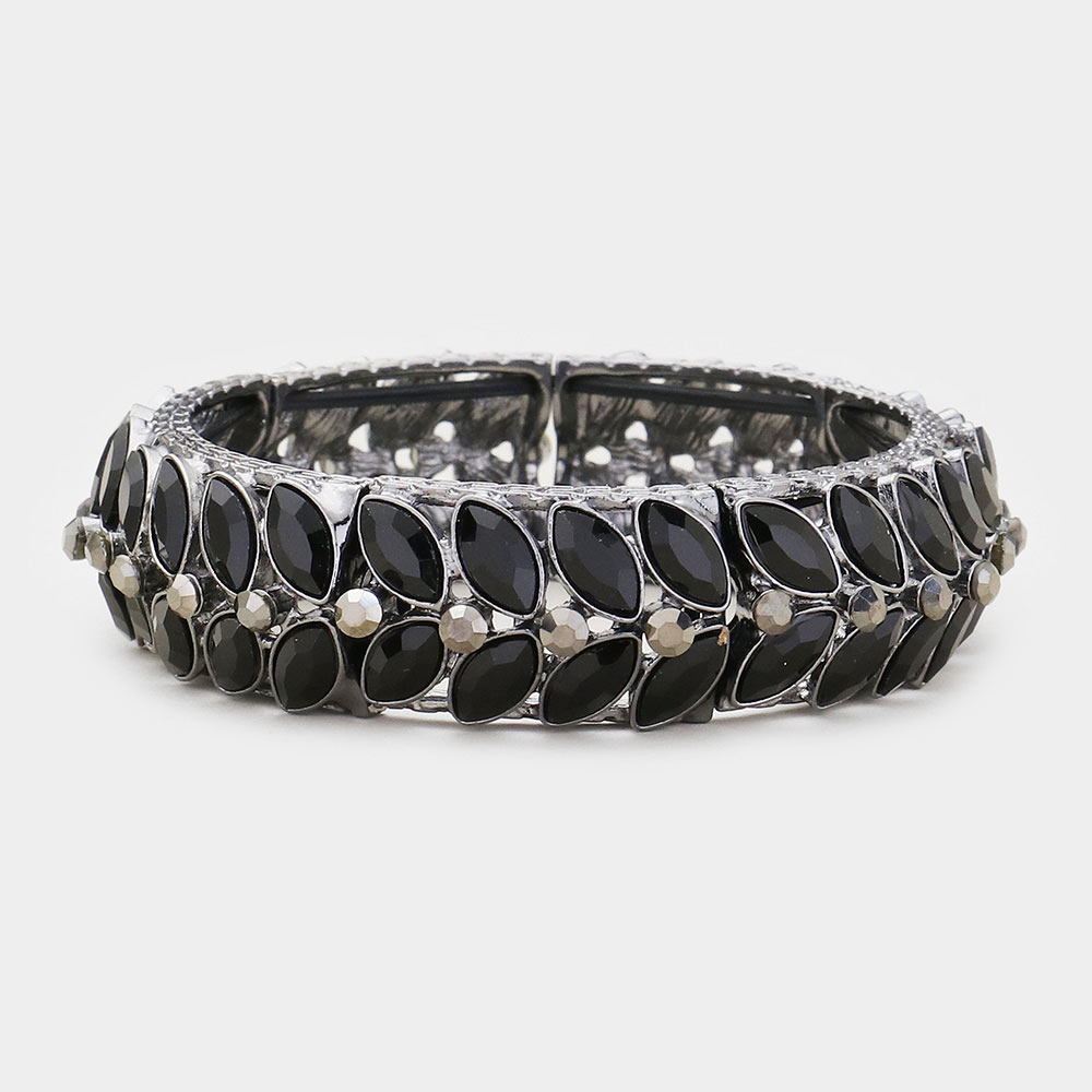 Glass Crystal Marquise Stone Cluster Stretch Bracelet