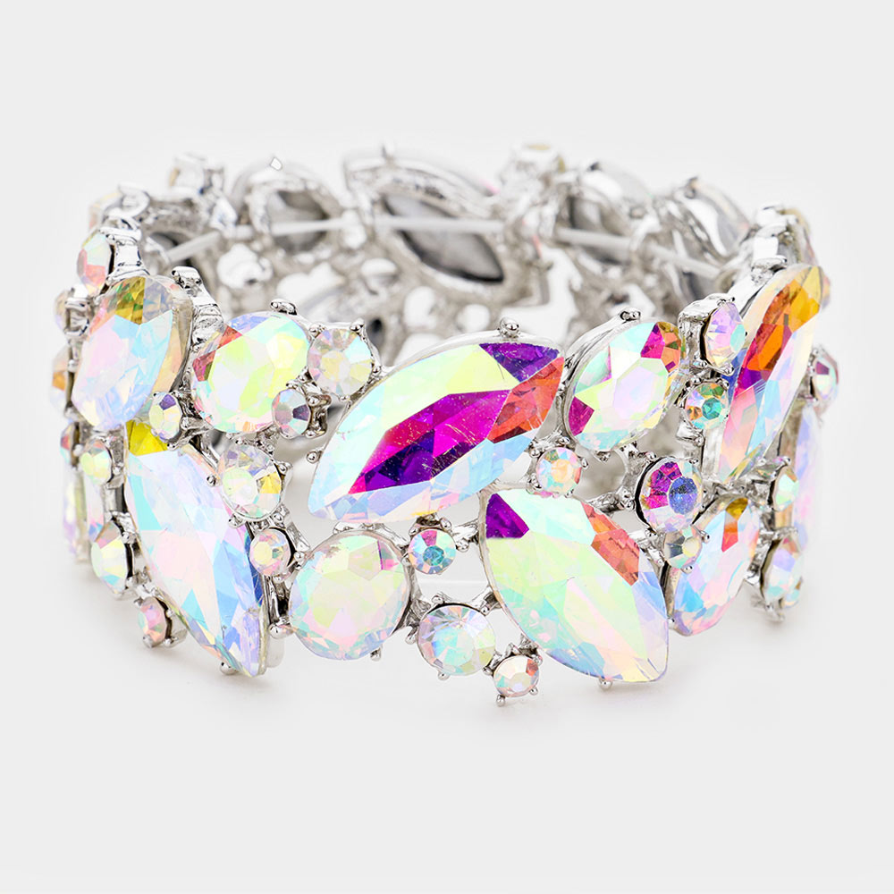 Teardrop Marquise Stone Cluster Stretch Evening Bracelet