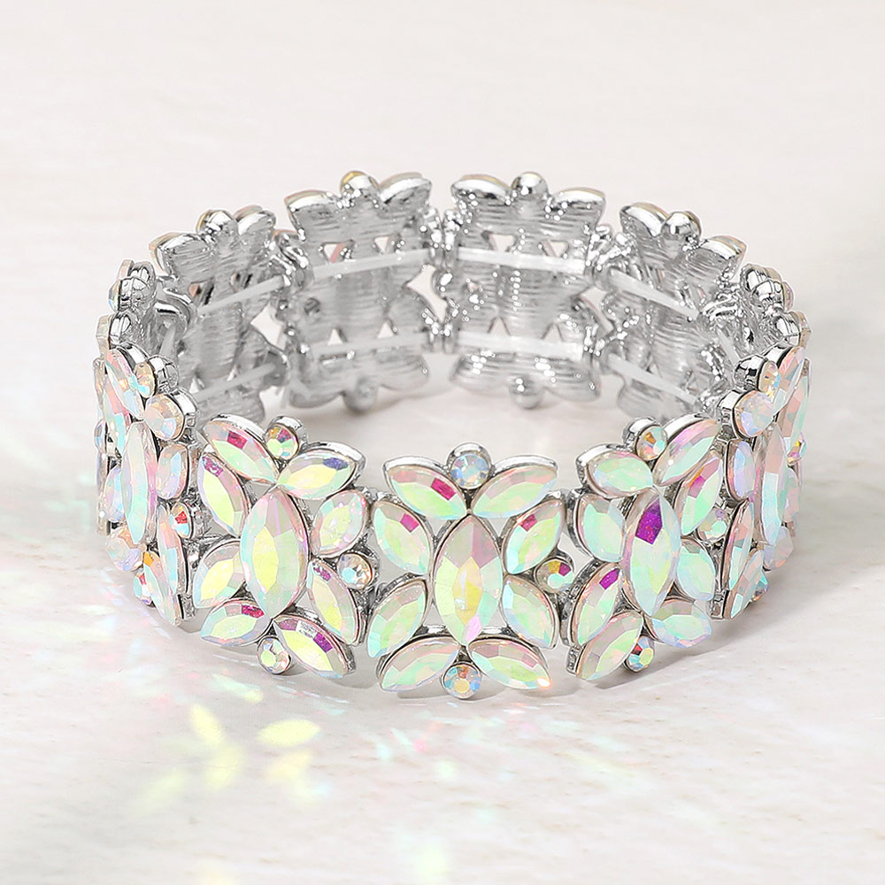 • A sparkling stretch bracelet with marquise floral crystal detailing designed for effortless elegance. Comfortable to slip on and perfect for parties, weddings, and formal events, adding radiant shine and a refined finishing touch to both evening and special-occasion looks.
