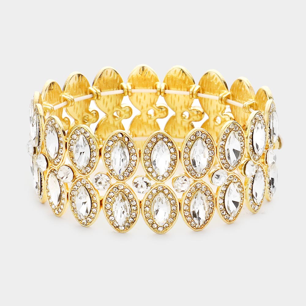 3PCS - Rhinestone Pave Necklace Clip On Earring Jewelry Set