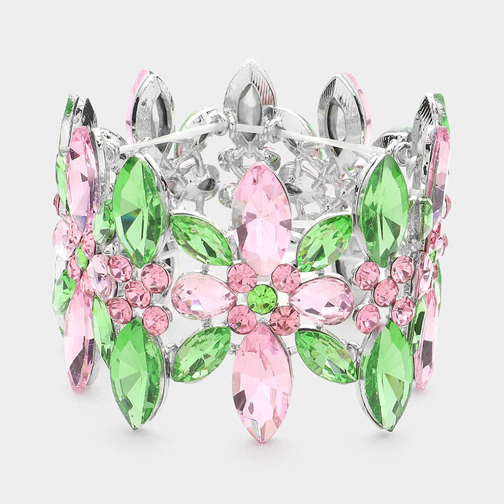 Marquise Stone Cluster Embellished Flower Stretch Evening Bracelet