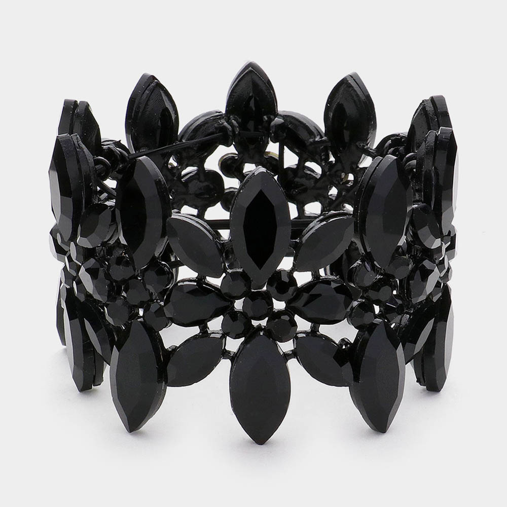 Marquise Stone Cluster Embellished Flower Stretch Evening Bracelet