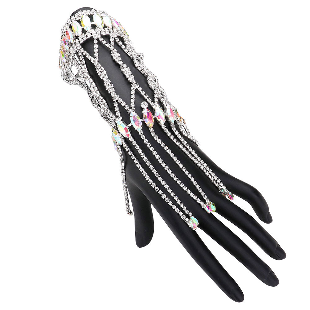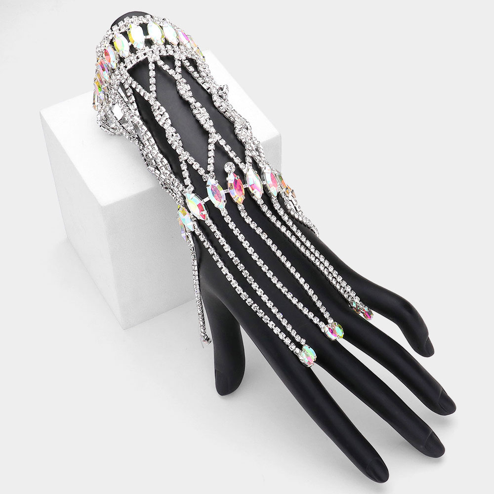 Teardrop Crystal Rhinestone Pave Hand Chain Evening Bracelet