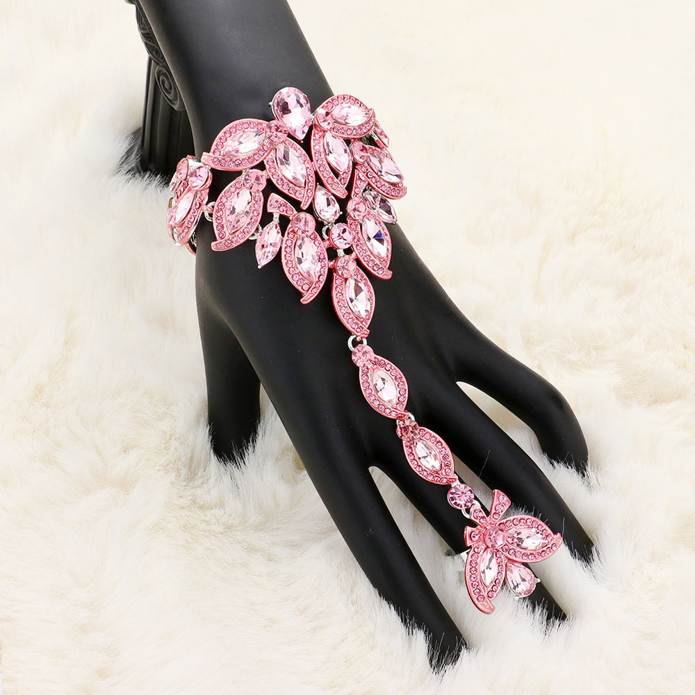 Marquise Stone Cluster Pointed Hand Chain Evening Bracelet