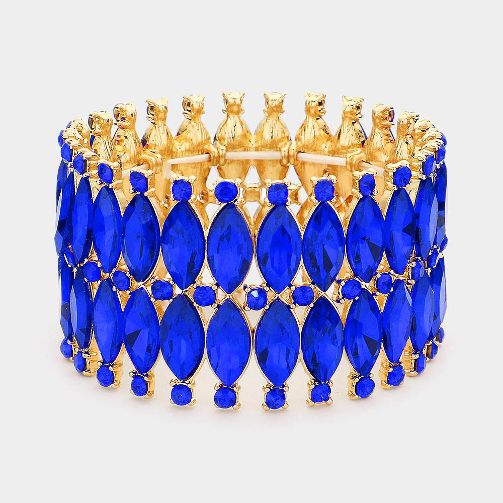 Stone Embellished Colored Metal Rectangle Link Necklace