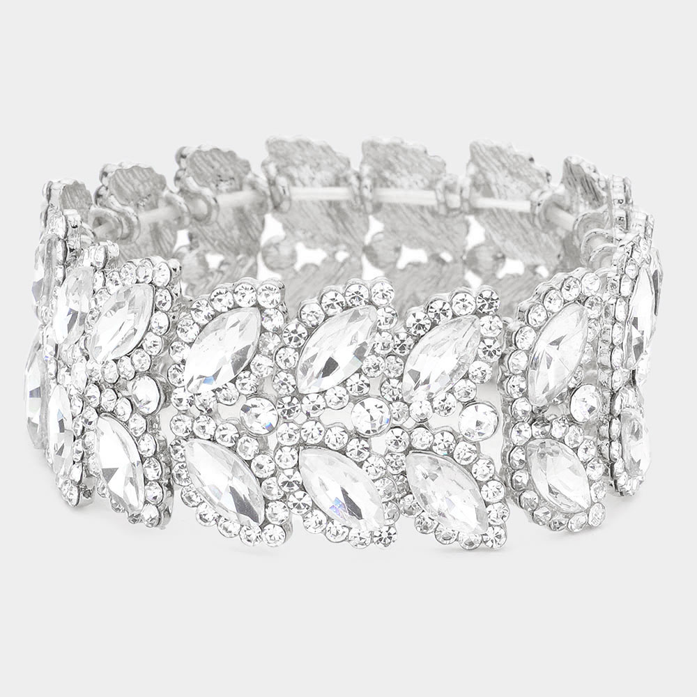 Marquise Crystal Cluster Vine Clip On Evening Earrings