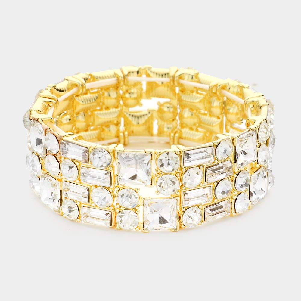 Pear Crystal Floral Rhinestone Stretch Evening Bracelet