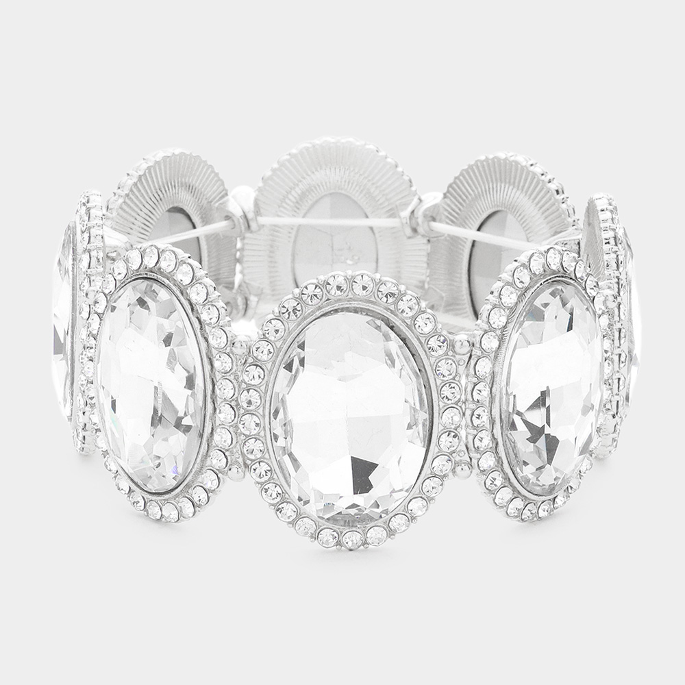 Stone Paved Link Pointed Hammered Metal Stretch Bracelet