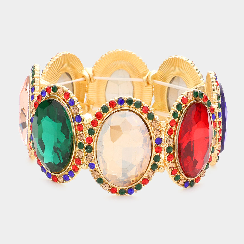 Oval Glass Crystal Stretch Evening Bracelet