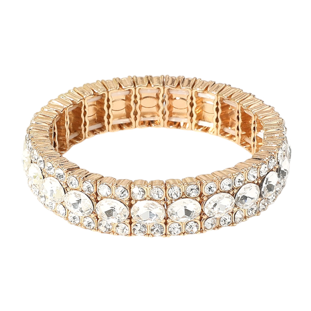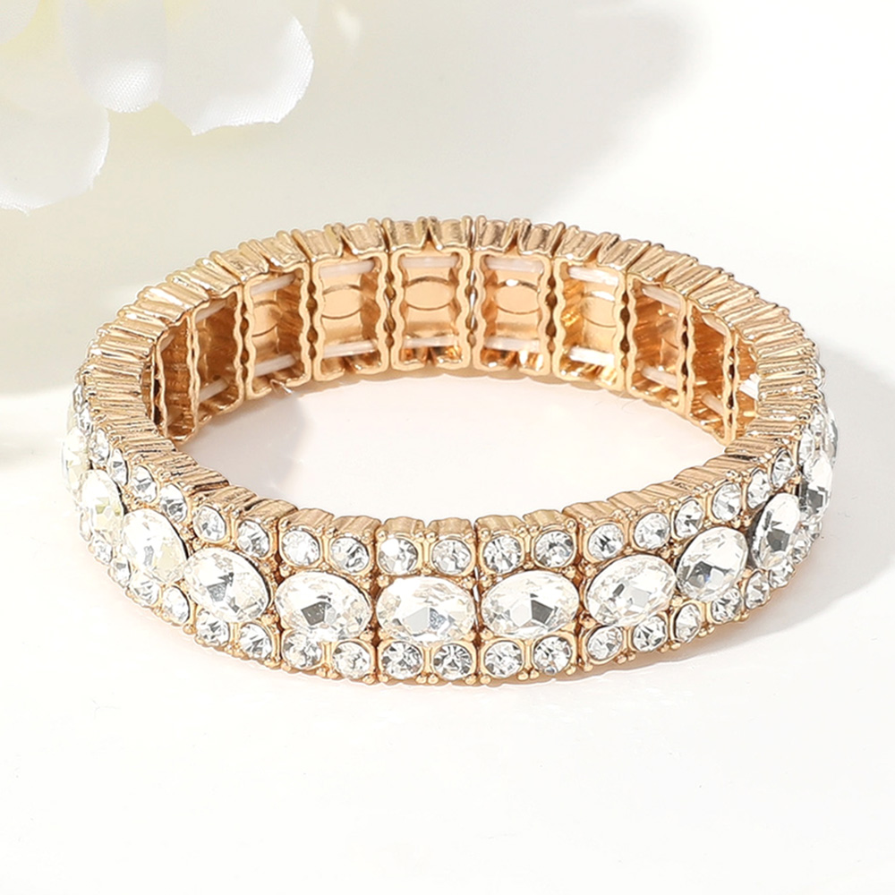 Oval Round Glass Stone Cluster Beaded Stretch Evening Bracelet