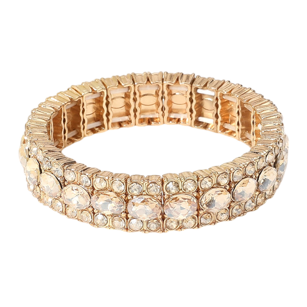 Oval Round Glass Stone Cluster Beaded Stretch Evening Bracelet