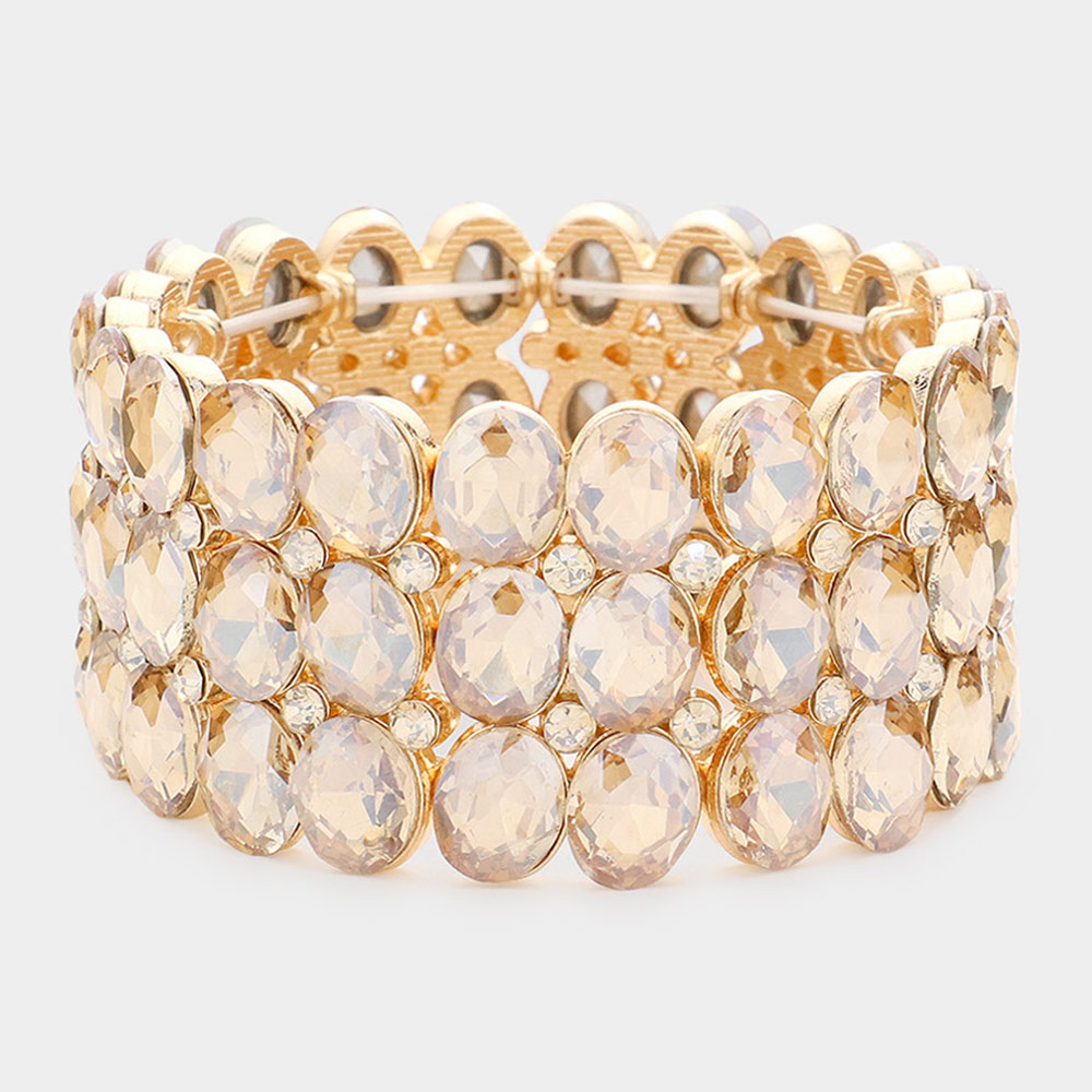 Marquise Stone Cluster Embellished Flower Stretch Evening Bracelet