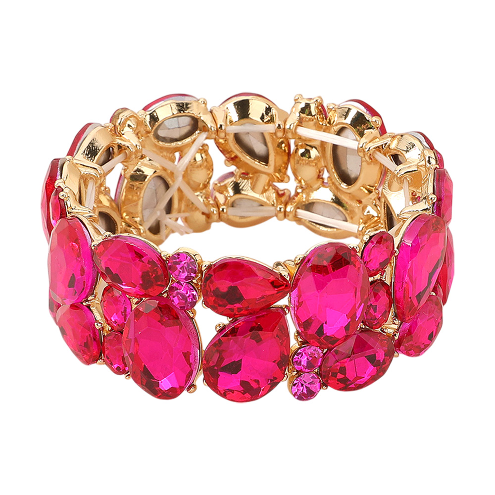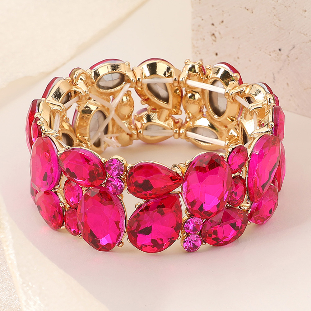 Oval Teardrop Glass Stone Cluster Stretch Evening Bracelet