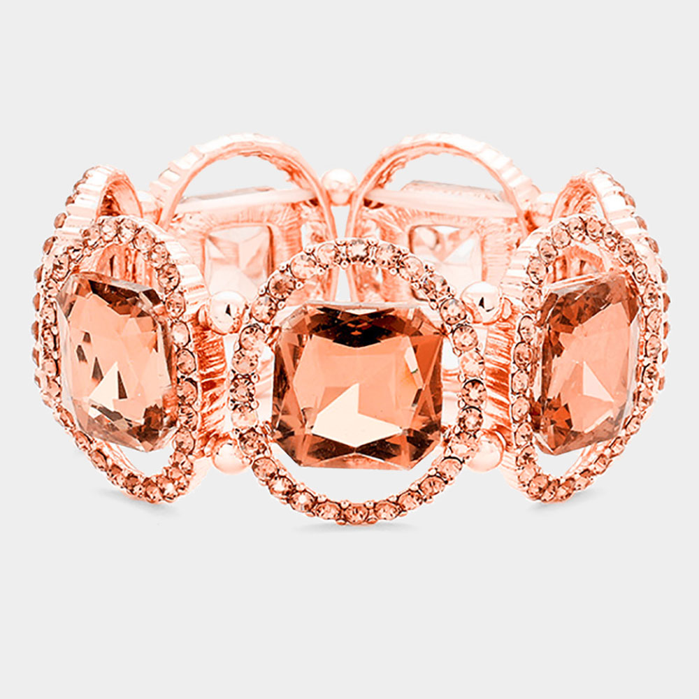 Pave Oval Trim Glass Crystal Stretch Evening Bracelet